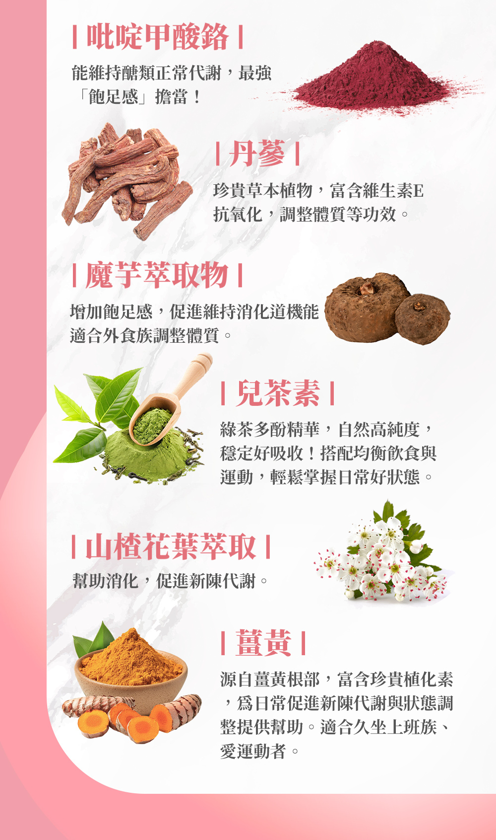■ 嚴選專利秋葵、丹蔘、魔芋萃取、膳食纖維