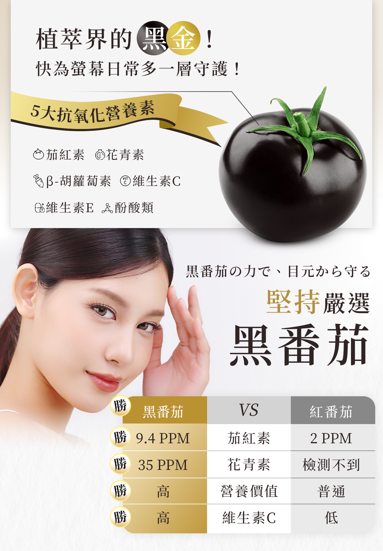 ◾️ 黑番茄 × 玉米黃素 × 維生素C 抗氧化配方